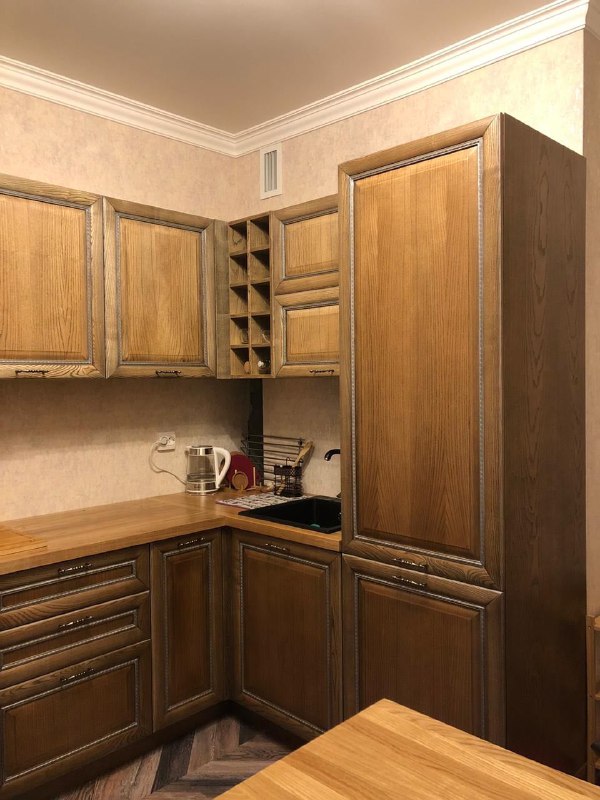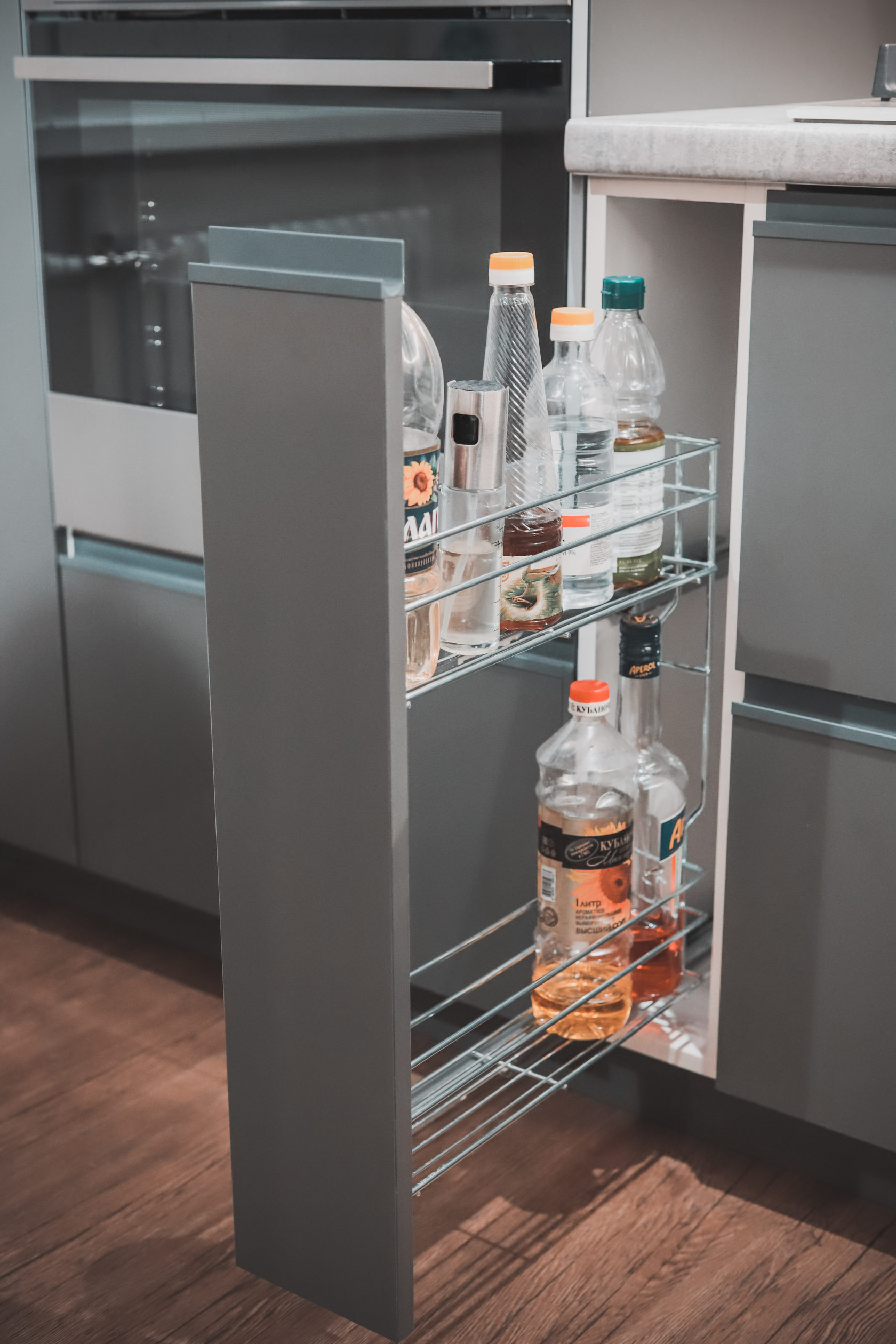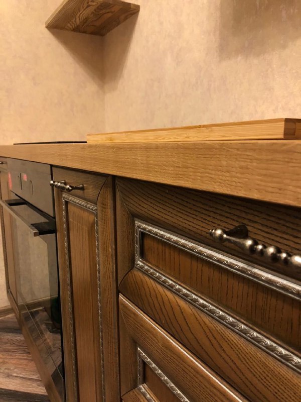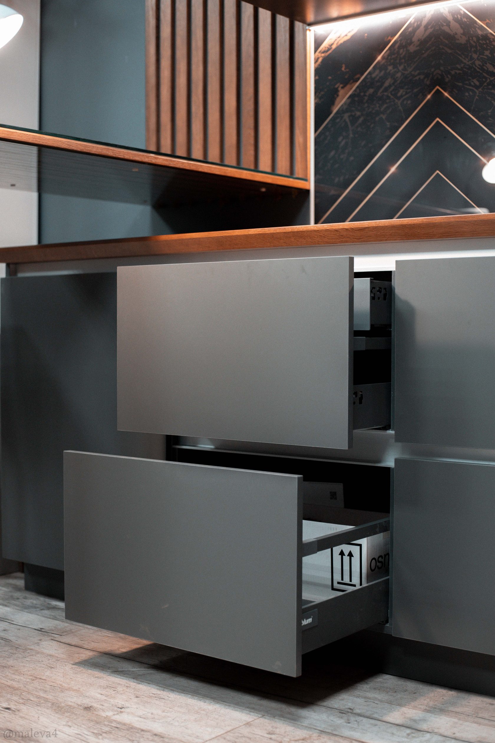 От высоты шкафов, их количества и наличия полок и ящиков зависит расход ЛДСП EGGER (Австрия), который составляет определенную часть от стоимости кухни. - Фурнитура и наполнение